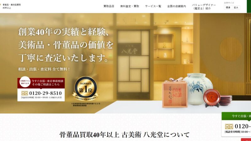 八光堂は、40年以上の歴史を持つ美術品・骨董品専門の老舗買取業者です。絵画や掛け軸、茶道具などの伝統工芸品に強みを持ち、全国対応の出張査定サービスでも高い評価を得ています。口コミでは「専門知識のある査定士が丁寧に説明して […]
