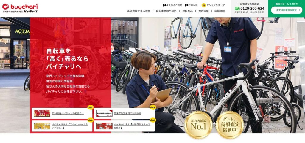 ロードバイクやミニベロ、マウンテンバイク、電動アシスト自転車を中心に買取をしているチェーン店です。全国に23店舗。さらに拡大中。